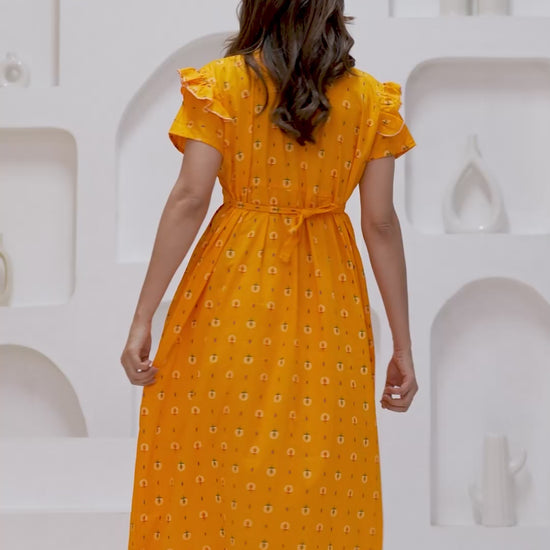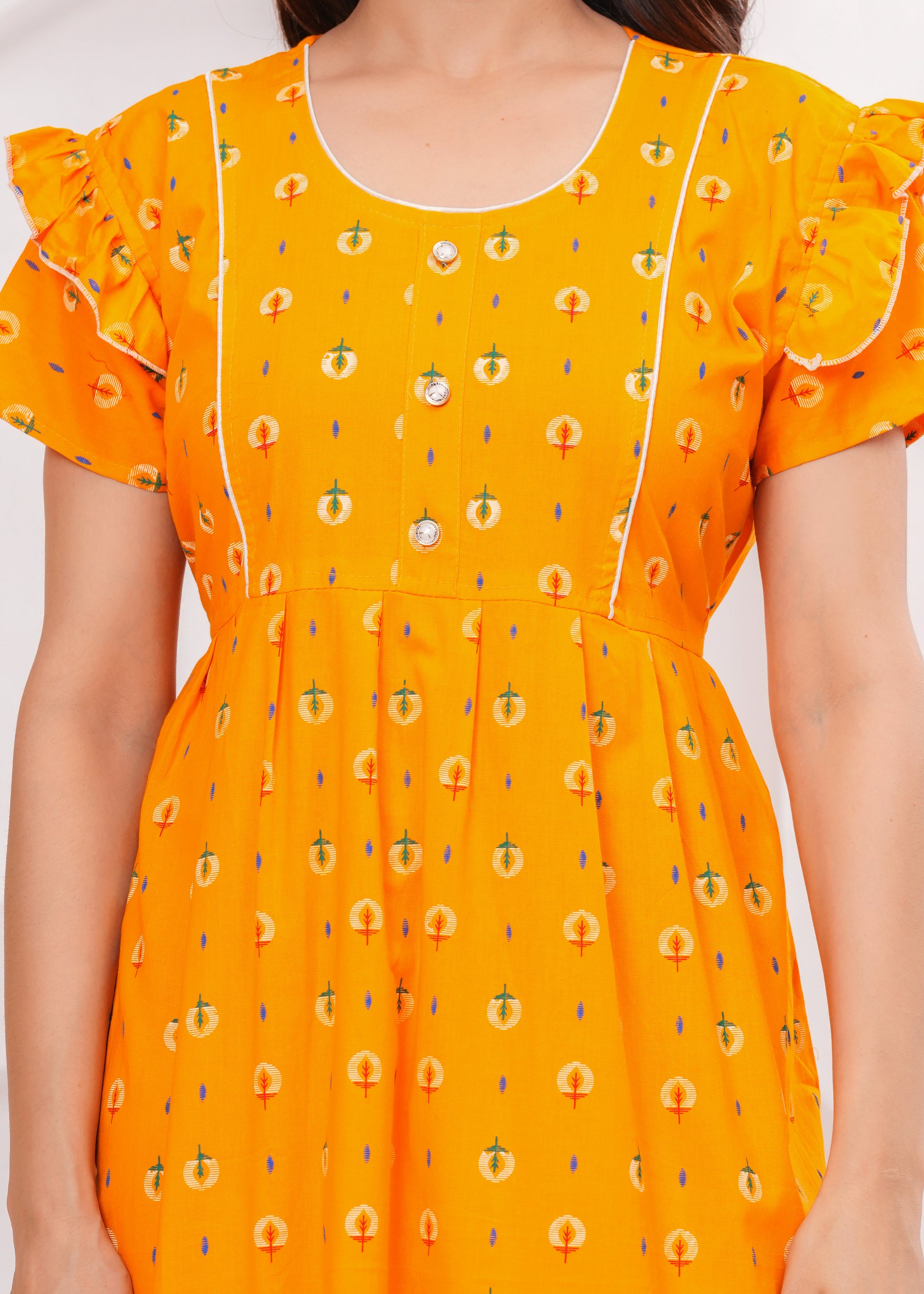 Frock Style Cotton Nightgown for Women (Yellow, XL)