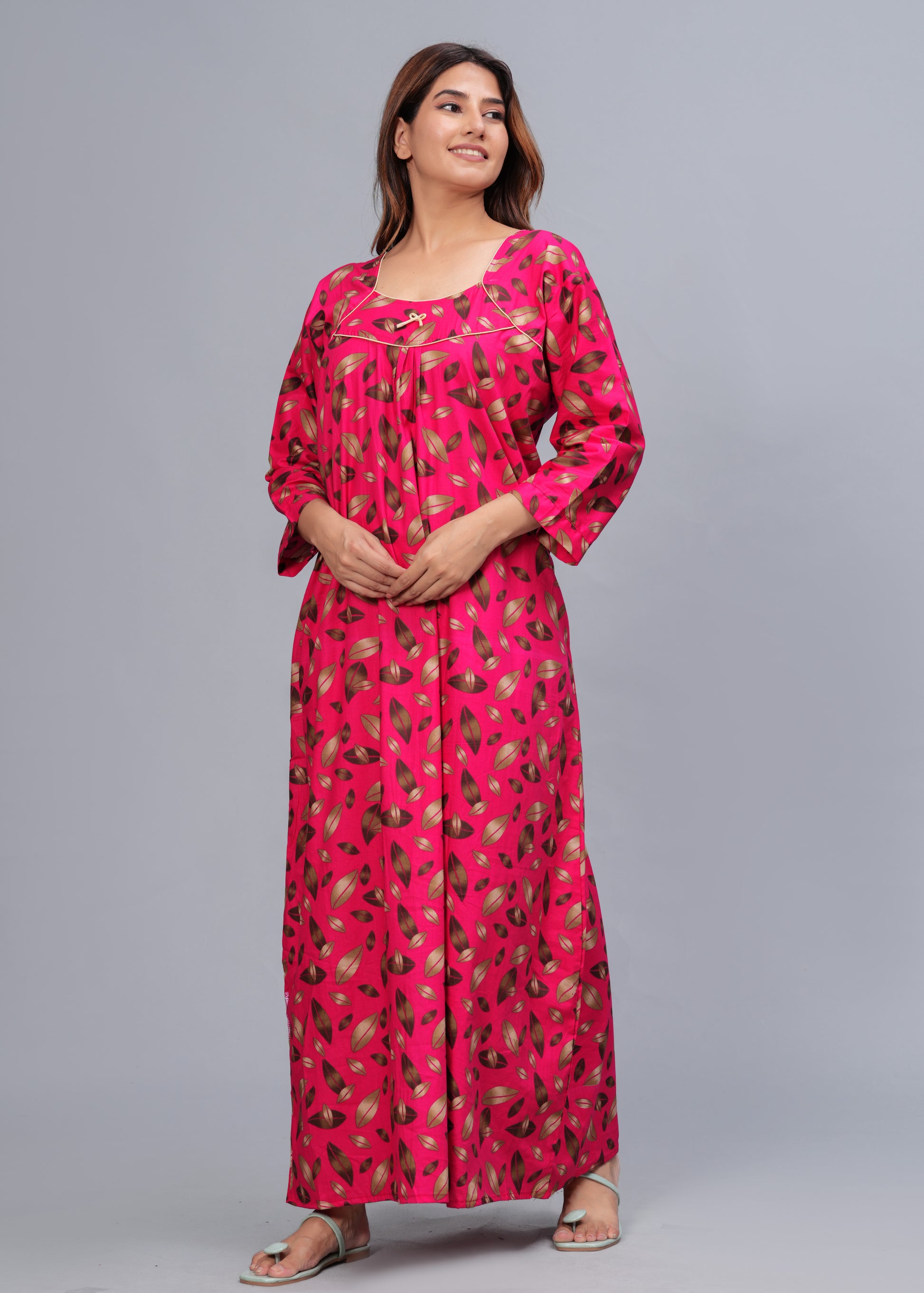 Full Sleeves Cotton Nightgown for Women (Raani Pink, XL)