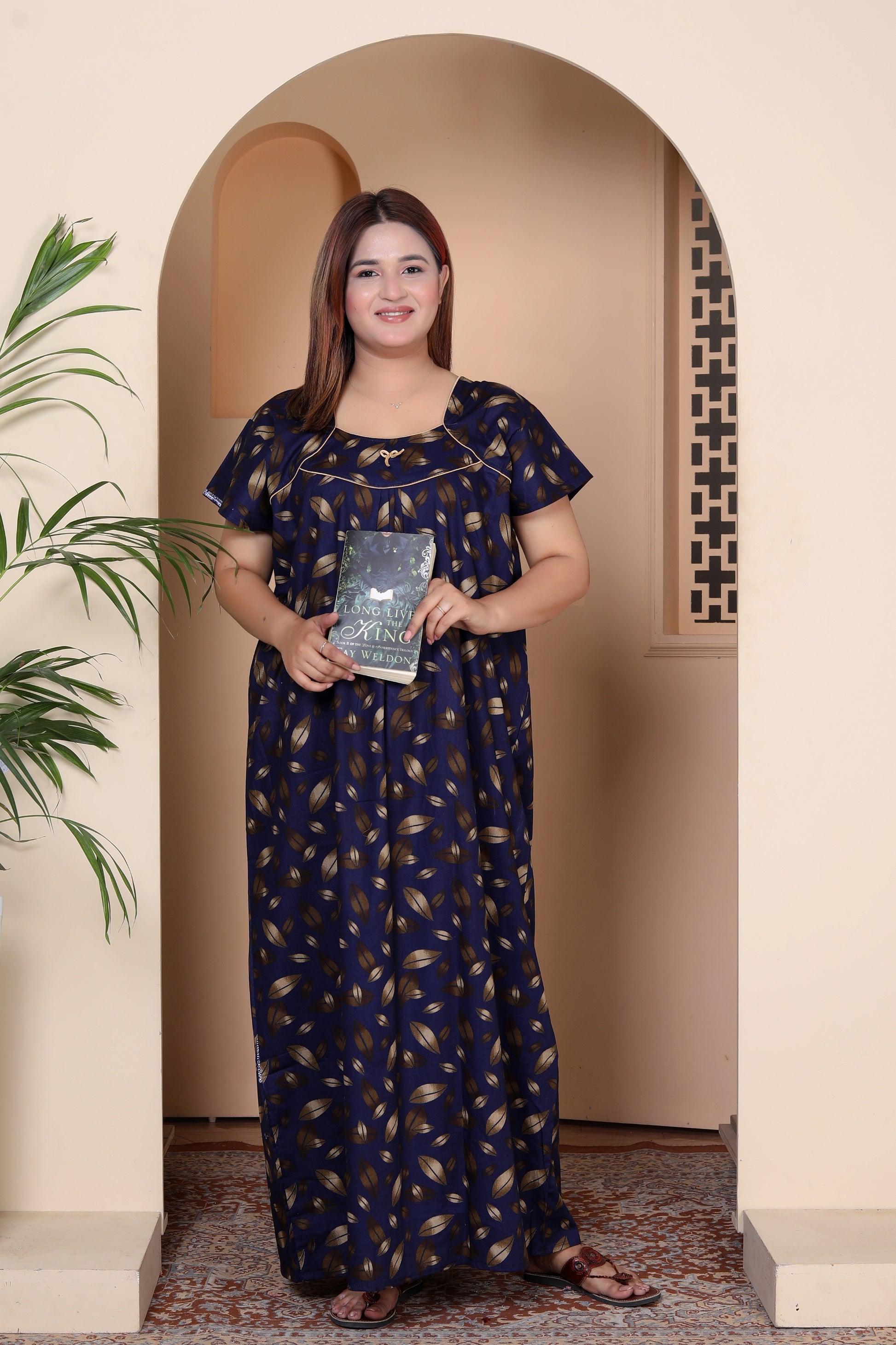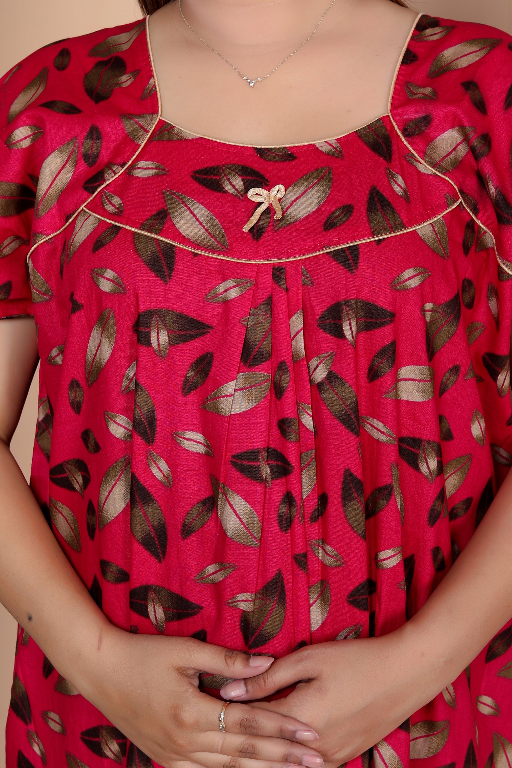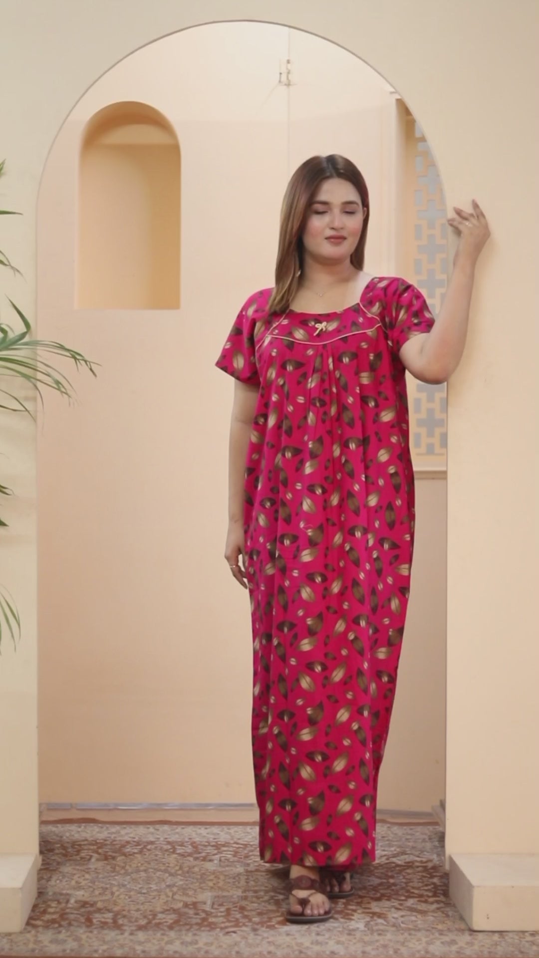 The women's short-sleeved full-length nightgown from HARGUN NIGHT WEAR offers the utmost in comfort when it comes to sleeping. We are aware of how crucial it is to have both design and practicality for the ideal night's rest. Key features: -Design with short sleeves for cool comfort -Complete covering for comfort throughout the night Our nightgown offers the pinnacle of luxurious sleepwear. With their full length and breezy texture, the short sleeves provide optimal comfort all night long. Furthermore, you can keep your belongings close at hand with the built-in pocket, which makes it perfect for napping or relaxing. The HARGUN NIGHT WEAR Short-Sleeved Full-Length Nightgown is a best-selling option for people who value comfort and quality. Upgrade your nightly routine with this garment. Place your order right now to get a peaceful night's sleep.