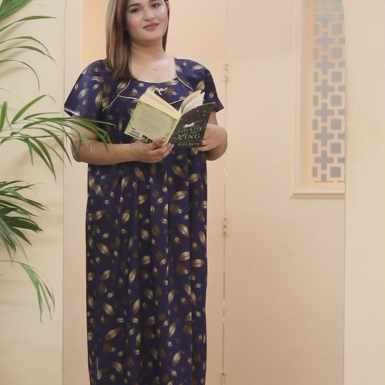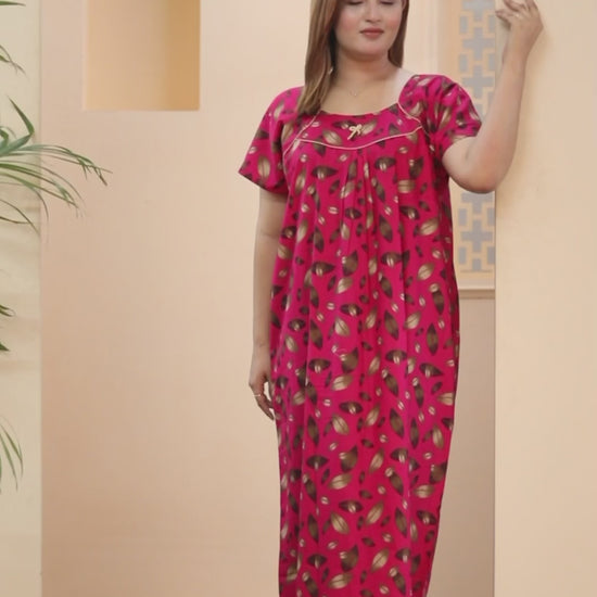 Short Sleeves Nightgown for Women, Cotton, Full Length, (XL, Navy Blue, Dark Pink)