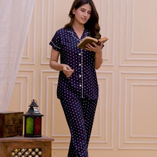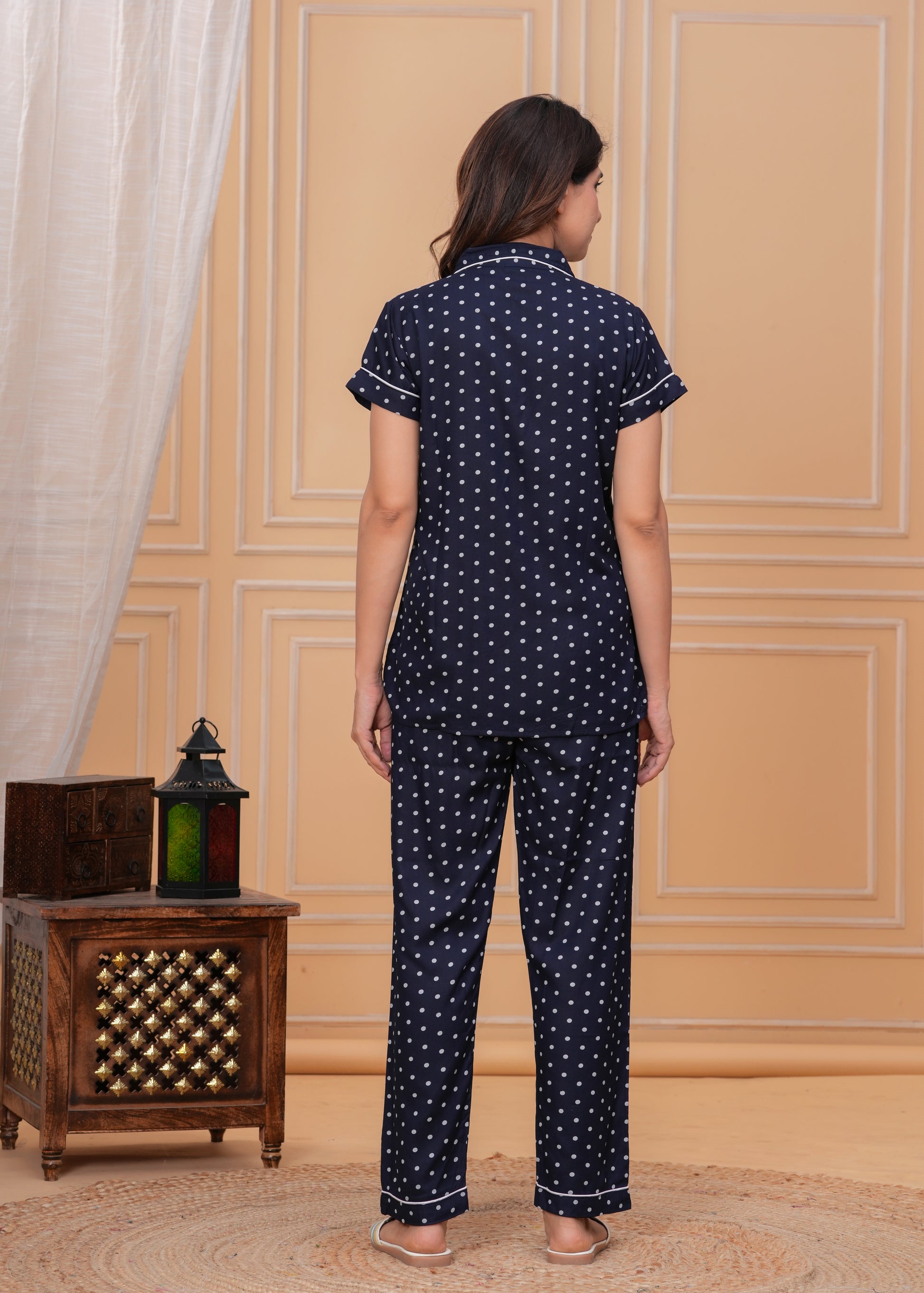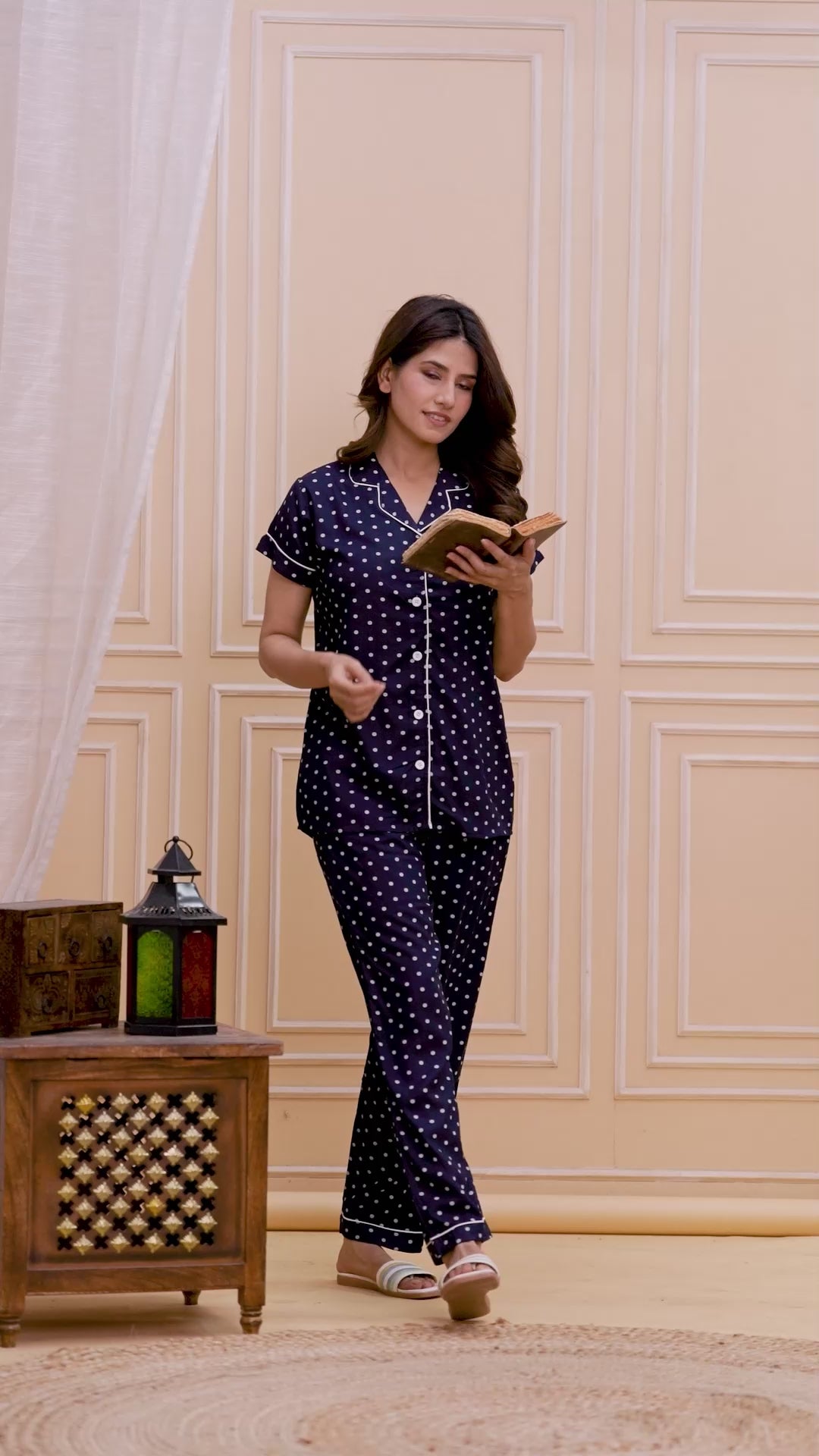 Upgrade your nightwear wardrobe with the HARGUN NIGHT WEAR Women’s Rayon Polka Dot Night Suit Set, combining elegant design with unbeatable comfort. Made from ultra-soft and breathable rayon, this sleepwear set feels luxurious against your skin, making it your perfect companion for restful nights and cozy mornings. The top features short sleeves, a flattering notched collar, and front buttons for a fuss-free fit. Matching pajama pants offer a relaxed silhouette with an elastic waistband and side pockets—perfect for lounging, sleeping, or working from home in comfort and style. Designed for modern women who appreciate quality and elegance in their nightwear, this set is also an excellent gifting choice for your loved ones.