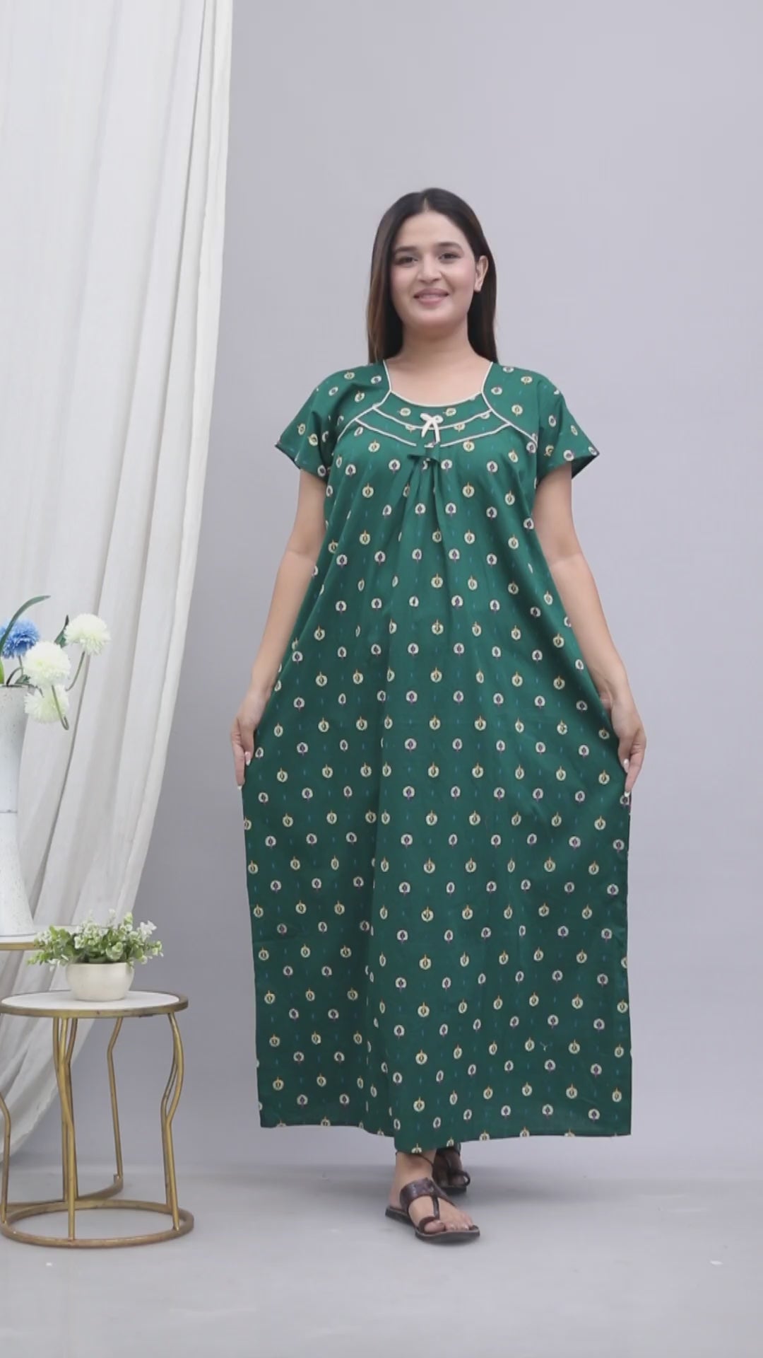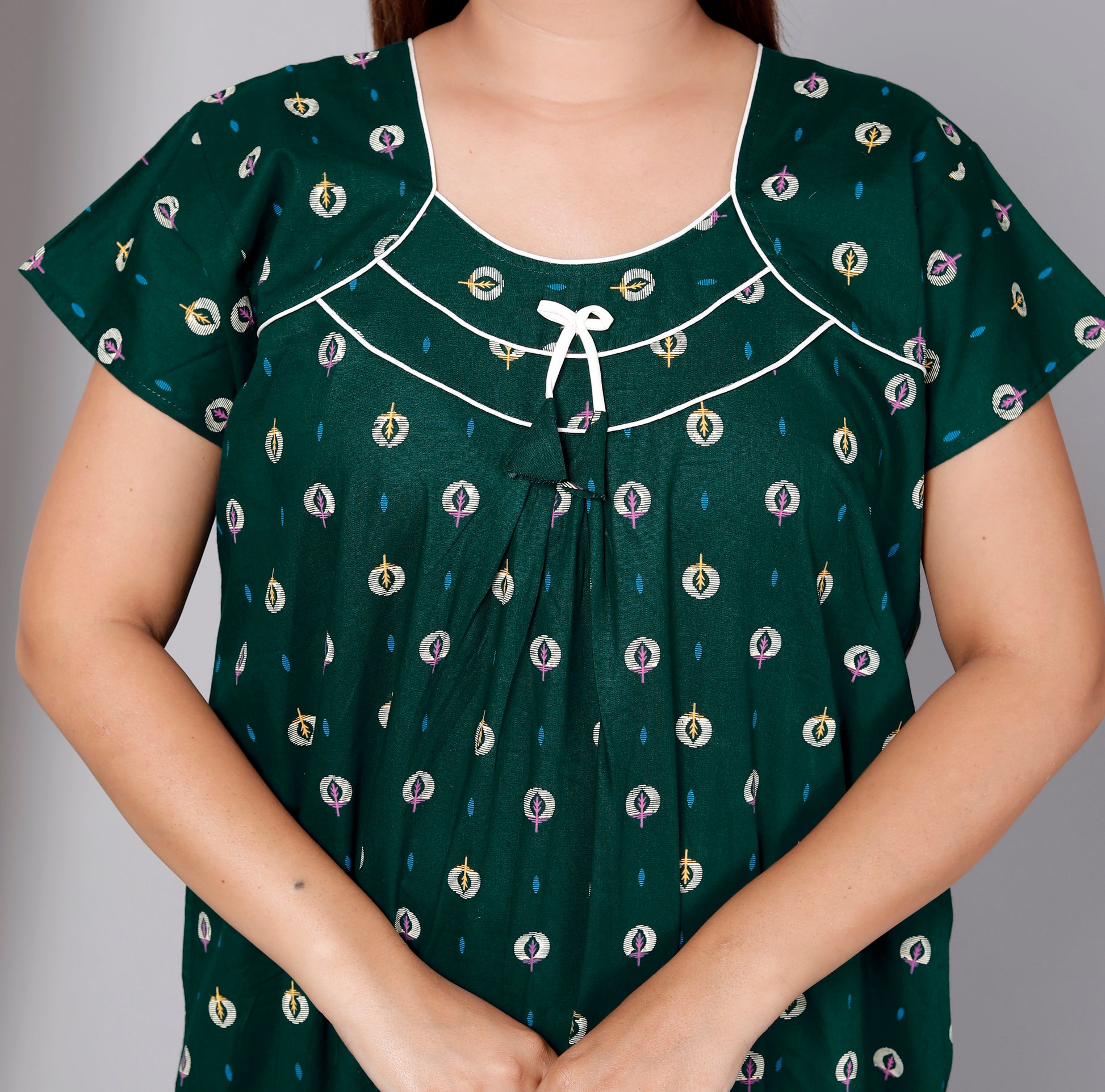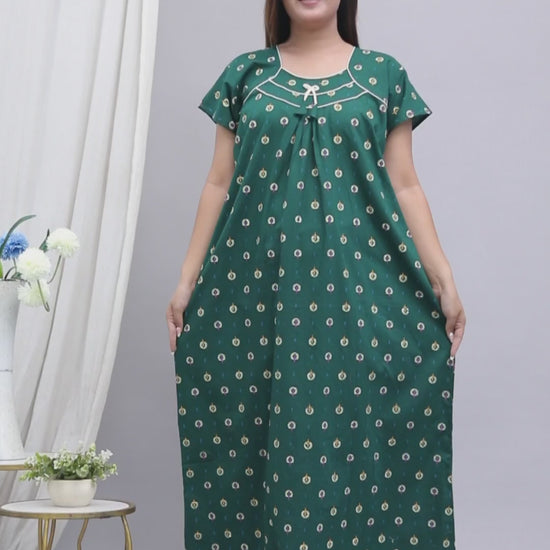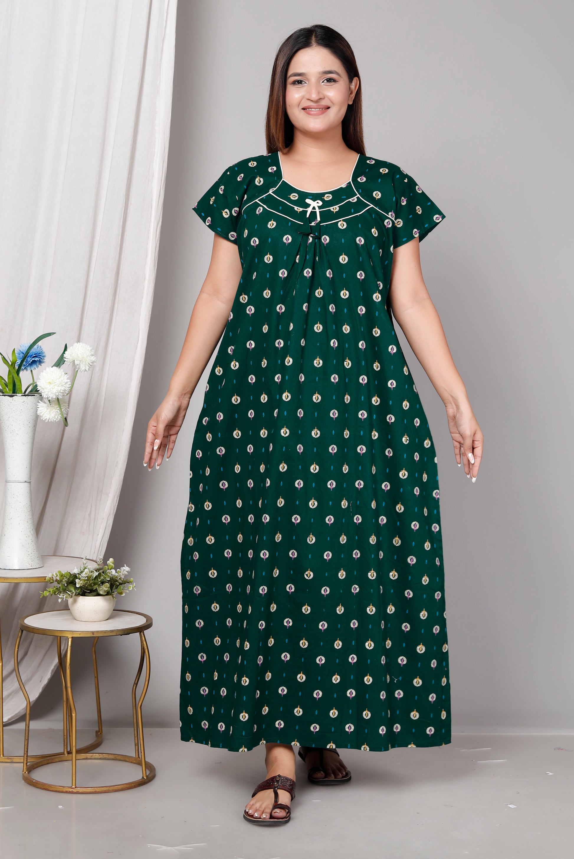 Women’s Pure Cotton Maxi Nighty – Soft Printed Night Dress for Daily Comfort (Green)